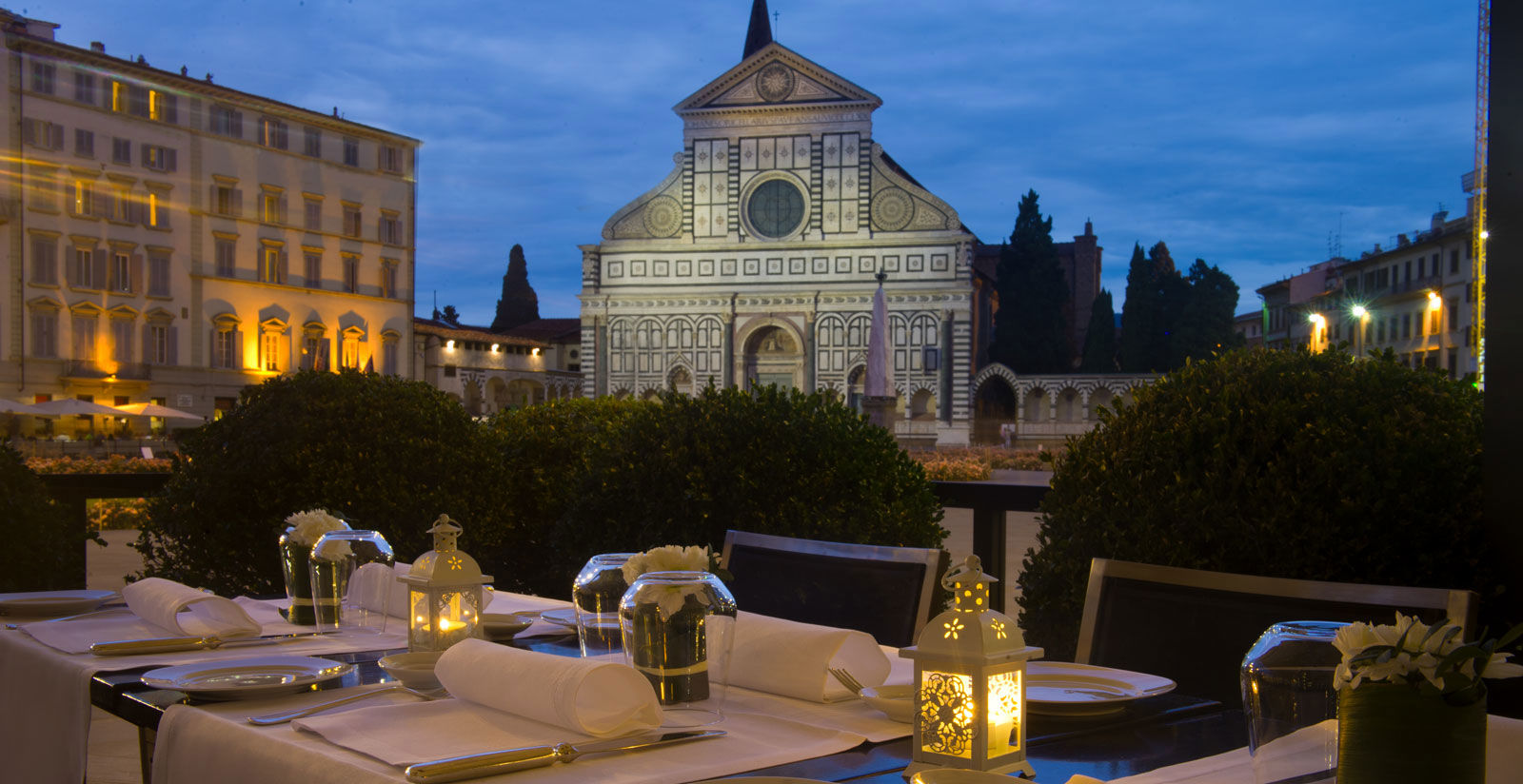El hotel de 5 estrellas está situado en el centro de la ciudad de Florencia, en Piazza Santa Maria Novella, uno de los barrios más vibrantes del centro.